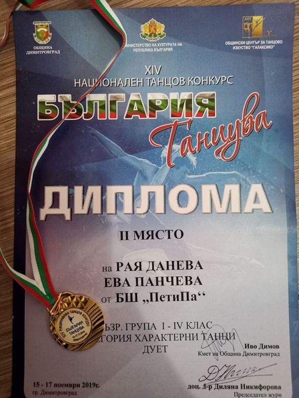 Рая Данева, Андреана Андреева, Адрияна Евтимова, Ралица Байнашева, Симона Стоянова, Ивайла Радкова, Преслава Симеонова и Ивона Мачева демонстрираха сериозна подготовка и бяха оценени подобаващо от журито. Те премериха сили с участници от професионални училища и донесоха в Сливен медали и грамоти. Учениците ни са представители на балет "Барби" и балет "ПетиПа".