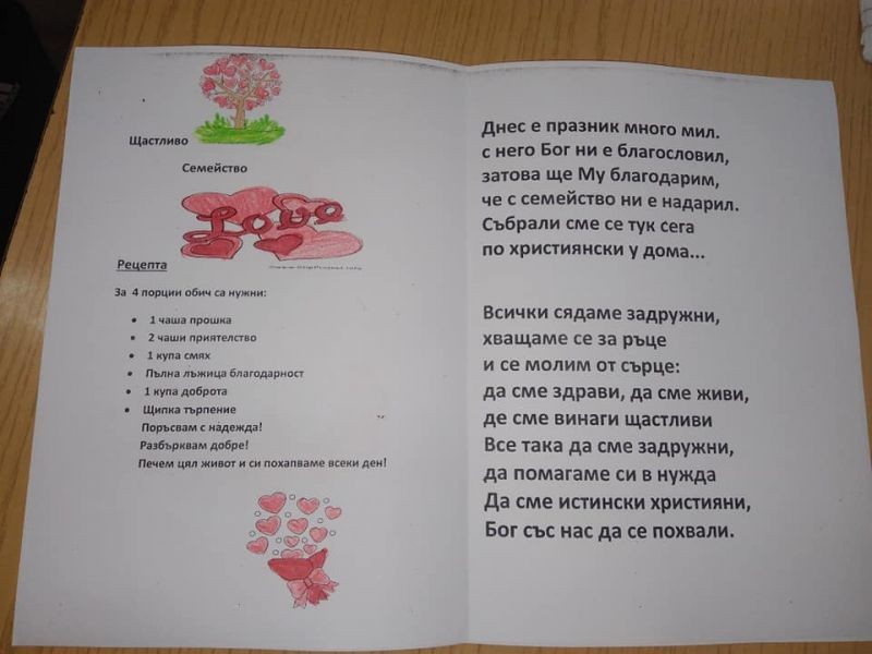 Ученици от първи до четвърти клас изработиха картички и книжки за своите близки, информационни табла и дори подредиха трапеза като голямо и задружно семейство. Не липсваха беседи в знак на почит към празника Въведение Богородично. Бяха организирани и тържества.