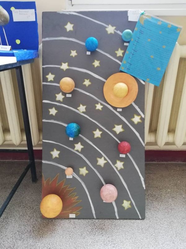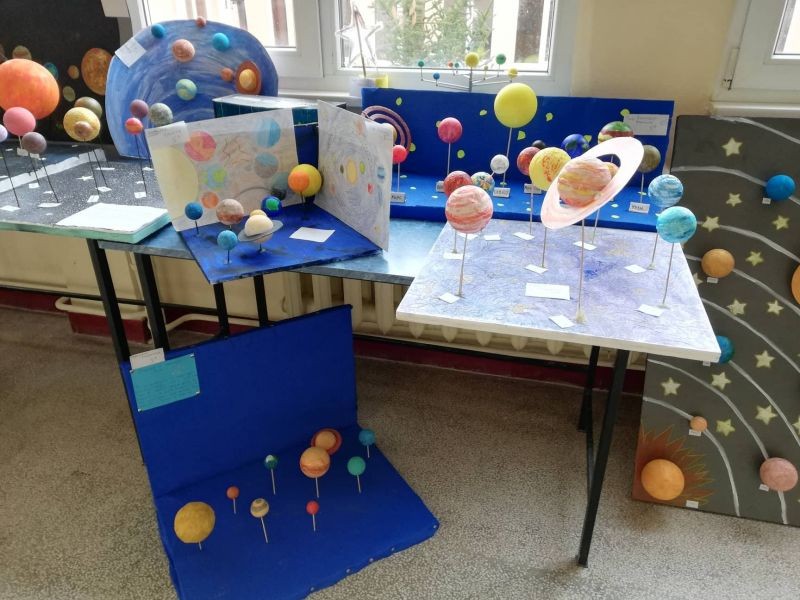 Учениците от 5. клас на ОУ "Елисавета Багряна" получиха творческа задача, озаглавена "Вдъхновен от звездите". Ентусиазирани от възможността да се изявят и да интерпретират вечния стремеж и възхищение на човечеството към Космоса, децата представиха свои макети, рисунки и презентации за Слънчевата система и космически изследвания. Експозиция на работите им е представена на втория етаж над форума на училището.