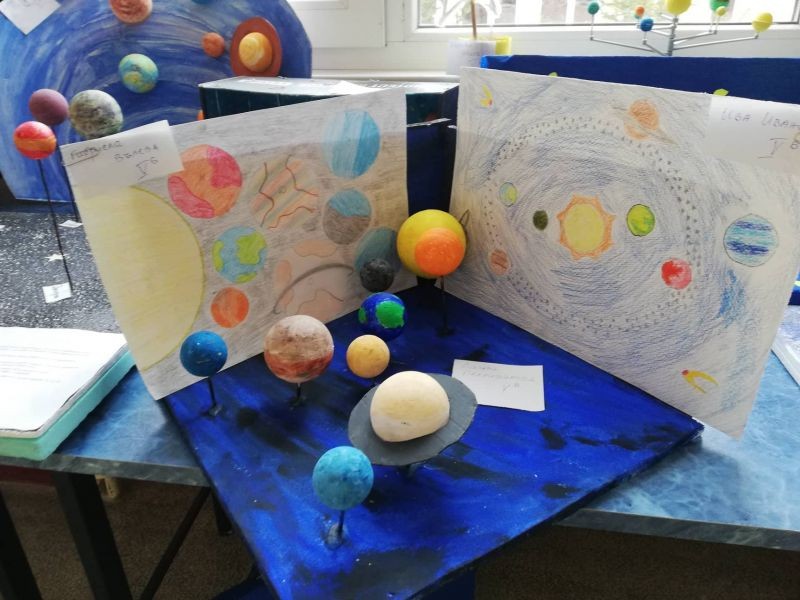 Учениците от 5. клас на ОУ "Елисавета Багряна" получиха творческа задача, озаглавена "Вдъхновен от звездите". Ентусиазирани от възможността да се изявят и да интерпретират вечния стремеж и възхищение на човечеството към Космоса, децата представиха свои макети, рисунки и презентации за Слънчевата система и космически изследвания. Експозиция на работите им е представена на втория етаж над форума на училището.