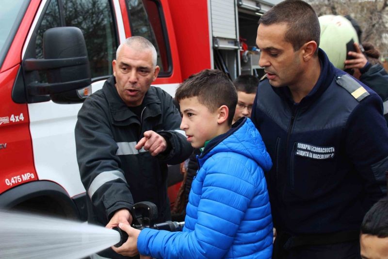 В демонстрацията на гасене на пожар и работа с маркучите, децата се включиха активно и показаха, че са едни талантливи бъдещи млади огнеборци! С нетърпение очакваме следващата ни среща с тези мъже на честта!