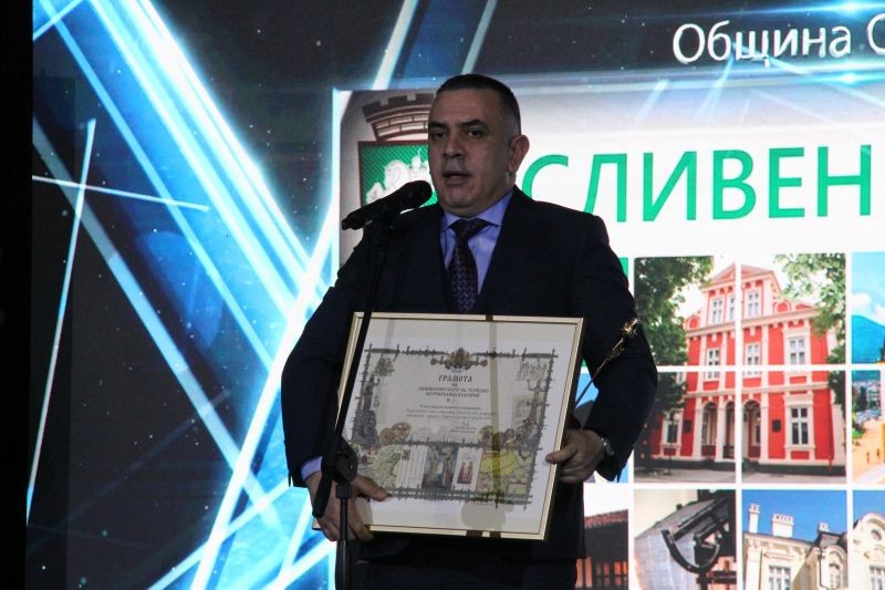 Община Сливен получи две отличия на Четвъртите годишни награди на Министерството на туризма. На официална церемония в понеделник в Централния военен клуб в София кметът Стефан Радев получи наградата „Община на 2019 година за културно-исторически туризъм“, която му беше връчена от шампиона по бокс Кубрат Пулев.