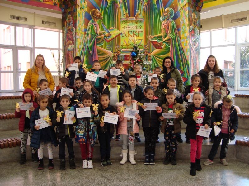 Днес, 17.12.2019 г. учениците от 4. клас с много коледно настроение посрещнаха децата от ОДЗ "Елица". Четвъртокласниците представиха стихотворения, танци и песни, с които истински зарадваха бъдещите първокласници. С интерес и голямо желание децата отгатваха гатанките в презентацията подготвена специално за тях. В края на тържеството учениците им подариха книжка с гатанки изготвена от деца за деца и сладка почерпка във вид на еленче. С голямо нетърпение нашите гости разгледаха стаите на първокласниците. За един час всяко дете се почувства като истински първокласник.