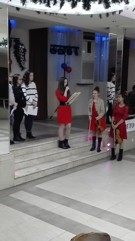 Хуманитарна гимназия „Дамян Дамянов“ се представи чрез предколедните послания и пожелания на Кремена Георгиева – ученичка от Xа клас, която прочете пред присъстващите своите последни поетични творби, и на две наши ученички, участващи в проект „Музиката вместо улицата“ – Сияна Атанасова, от Xа клас, и Мирослава Илиева, от VIIIб клас. Сияна и Мирослава със своите цигулки и известните коледни фрагменти допринесоха много за настроението на гостите в залата.