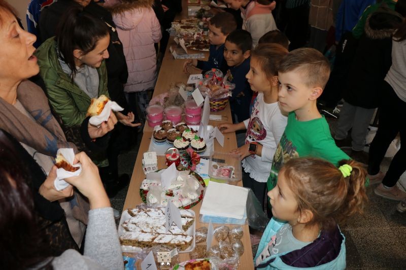Импровизираните щандове, отрупани с коледни лакомства, картички и коледни украси привличаха вниманието на малки и големи.