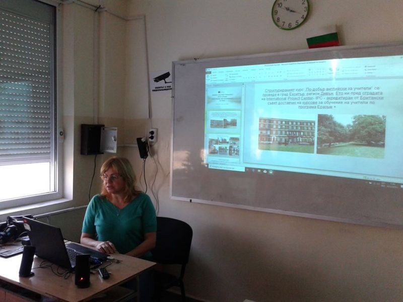 Участниците в курсовете във Великобритания , П. Ангелова, М.Манева и Л. Дойчев, споделиха методичен опит с колеги от Спортно училище. При представянето на презентациите, учителите направиха оценка за своята дейност, разказаха за организацията и провеждането на курсовете, своето участие в различните дейности, впечатленията си от Великобритания и срещите с колеги от други европейски държави. На събитието присъстваха представителите на избраната Комисия за мониторинг и оценка, която ще проследи и оцени отчитането на проектните резултати.