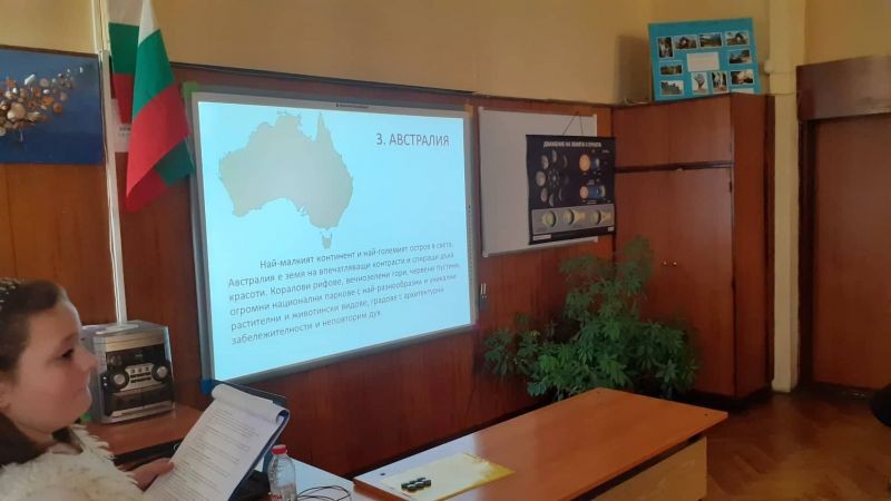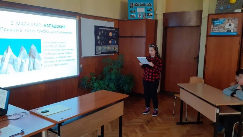 Първото виртуално околосветско пътешествие на клуб „Виртуално пътешествие“ се осъществи по предварително определен маршрут. По време на това „пътуване“ участниците от 3 а и 4 б клас събираха и добавяха информация за природни и исторически забележителности от различни континенти, с което повишиха знанията си за света и обогатиха себе си.