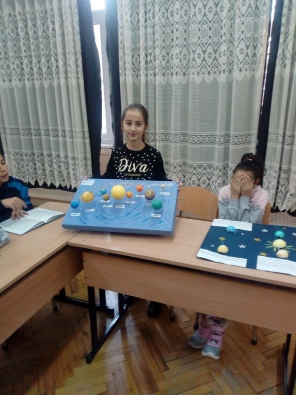 Представиха и своите проекти "Слънчева система", като отбелязаха, че планетите носят имената на древни гръцки или римски богове. Разказаха за повърхността на Меркурий, която е с множество кратери като Луната. След образуването на Слънчевата система, скални отломки, движещи се около Слънцето, продължавали да се блъскат в планетите, докато те все още се "раждали". Белезите от тези удари са кратерите по Меркурий и Луната. А кратерите на Земята са се изгладили.