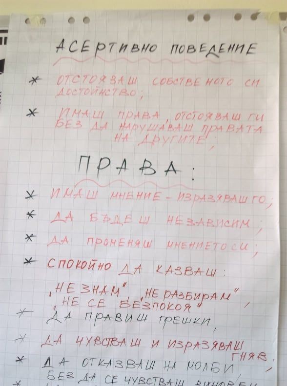 Какво означава асертивно поведение и как да отстояваме себе си проявявайки уважение към другия беше темата, по която учениците от 7 а клас на Спортно училище „Димитър Рохов“ работиха съвместно с Анелия Иванова – експерт от Младежки дом Сливен и Пламена Иванова от ПХГ „Д. Дамянов“ – фасилитатор. Посредством забавни ролеви игри, дискусии, работа в екип учениците се запознаха с различните подходи в общуването с връстници, научиха нови понятия и тренираха нови умения за общуване без агресия.