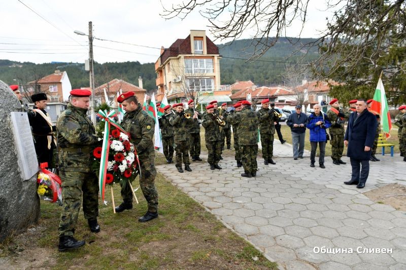 Венци и цветя пред морената на пл. „17 януари“ поднесоха кметът Стефан Радев, Сливенският митрополит Иоаникий, областният управител Чавдар Божурски, председателят на местния парламент Димитър Митев и общински съветници, директори и представители на институции, граждански дружества, културни институти, училища и др. Венци и цветя бяха поднесени от името на министъра на земеделието, храните и горите Десислава Танева, евродепутата Асим Адемов, народния представител Мария Белова и командира на Военно формирование 22220 полк. Любомир Вачев.