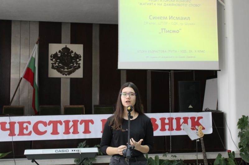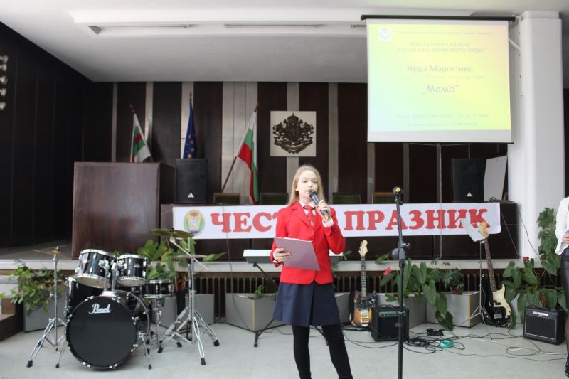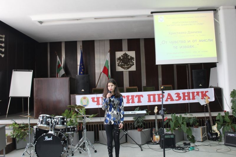 По традиция празникът продължи с рецитаторски конкурс под надслов „Магията на Дамяновото слово” в зала „Май“. Гости на празника бяха Димитринка Петкова, заместник-областен управител, д-р Николай Сираков, директор на Регионалния исторически музей, Милена Желева, председателка на обществения съвет, Георги Божев, председател на сдружение „Активен гражданин“, както и други представители на местната общност – приятели на гимназията.