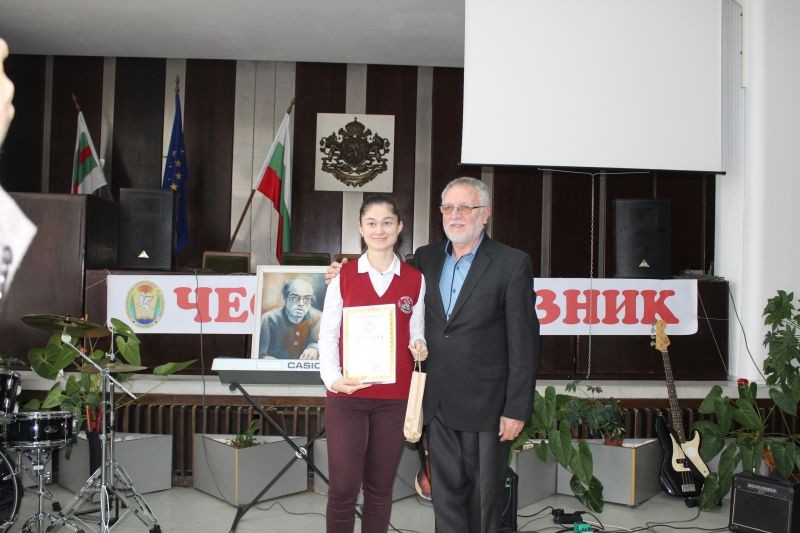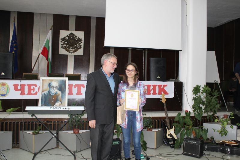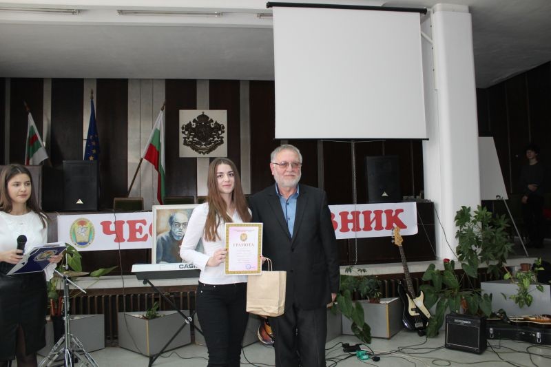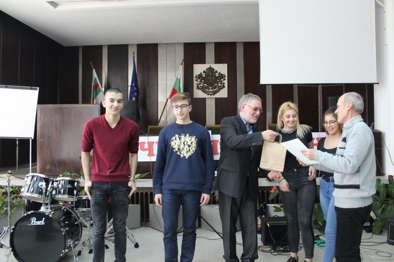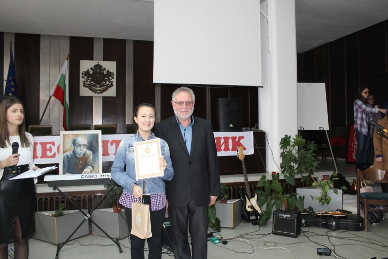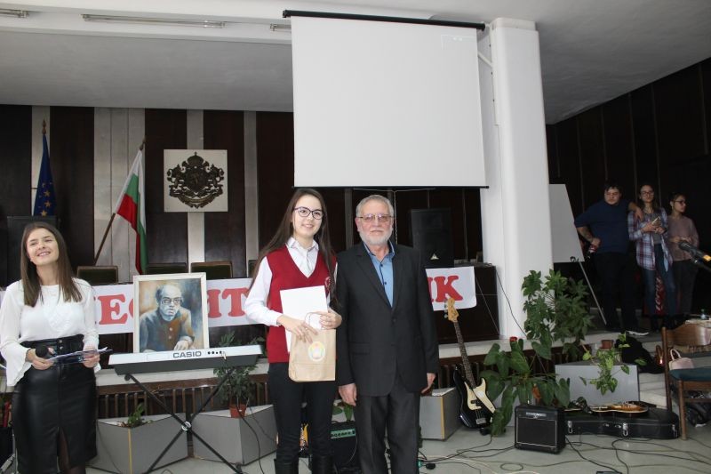Директорът на гимназията Жельо Радев награди победителите в конкурсите за рецитаторско майсторство и за лично творчество – поезия, проза, компютърна графика и видеоклипове, вдъхновени от стиховете на Дамян Дамянов.