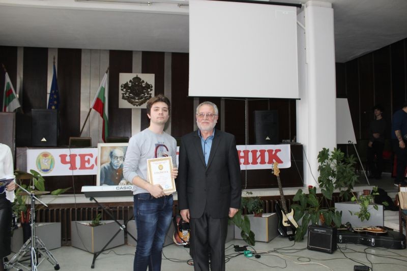 Директорът на гимназията Жельо Радев награди победителите в конкурсите за рецитаторско майсторство и за лично творчество – поезия, проза, компютърна графика и видеоклипове, вдъхновени от стиховете на Дамян Дамянов.