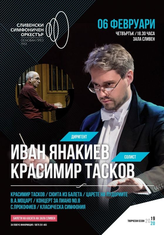 Под диригентството на Иван Янакиев ще бъдат представени произведения на Моцарт, Красимир Тасков и Прокофиев.