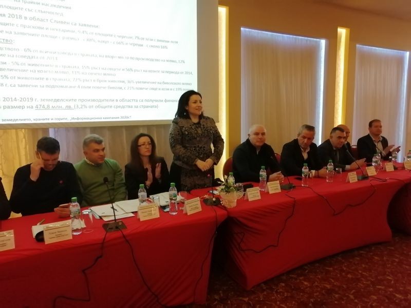 Министърът на земеделието, храните и горите Десислава Танева и екипът й се срещнаха със селскостопански производители, ръководители и служители в структурите на министерството в област Сливен. Събитието се състоя на 10 февруари в хотел „Национал“ в Сливен. То бе част от информационната кампания, организирана от министъра, за директните плащания, предстоящите приеми по Програмата за развитие на селските райони през 2020 година, общата селскостопанска политика. Гост на срещата бе областния управител Чавдар Божурски. „Приемам като своя основна задача да правя необходимото, за да може местните структури на МЗХГ, а и не само те, да вземат оптимални решения и да решават възникнали казуси“, каза Божурски при откриването на форума. Той информира, че от есента на миналата година е в тесен контакт с ръководителите на „Напоителни системи“ и „В и К“, които стопанисват двата големи язовира в областта – „Жребчево“ за напояване и „Асеновец“ за питейни нужди. „Действително има проблеми предвид природните условия, но сме взели всички необходими мерки, за да бъде осигурено без проблем напояването през следващите месеци, както и питейното водоснабдяване“, заяви още областният управител. Гост на срещата бе и кметът на община Сливен Стефан Радев.