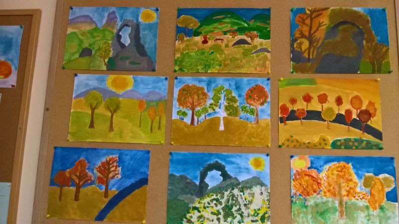 Те представят своята изложба от рисунки, която е подчинена на темите: Скален феномен „Халката” , Пейзаж „Есен” и Натюрморт „Дарове на природата”. Учениците възприемат природата като неизчерпаем източник на мъдрост и познание, красота и вдъхновение.