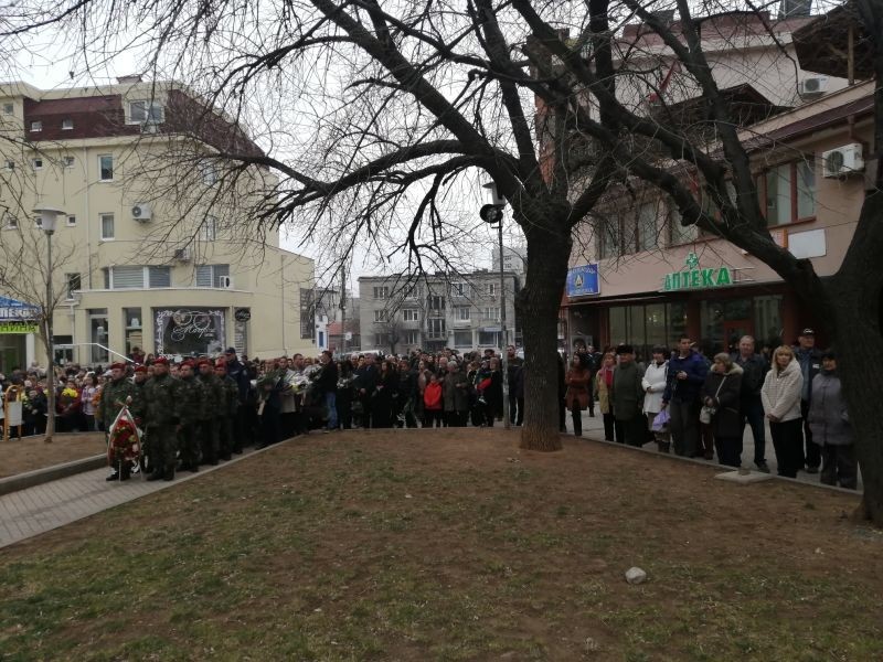 Възпоменателна церемония с военни почести, поднасяне на венци и цветя се състоя на 19 февруари на площад „Васил Левски“ пред паметника на Апостола. Отец Евгений Янакиев, протосингел на сливенската митрополия, отслужи заупокойна молитва. Областният управител Чавдар Божурски бе гост на церемонията.
