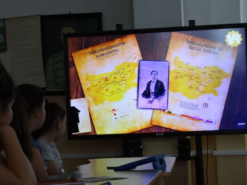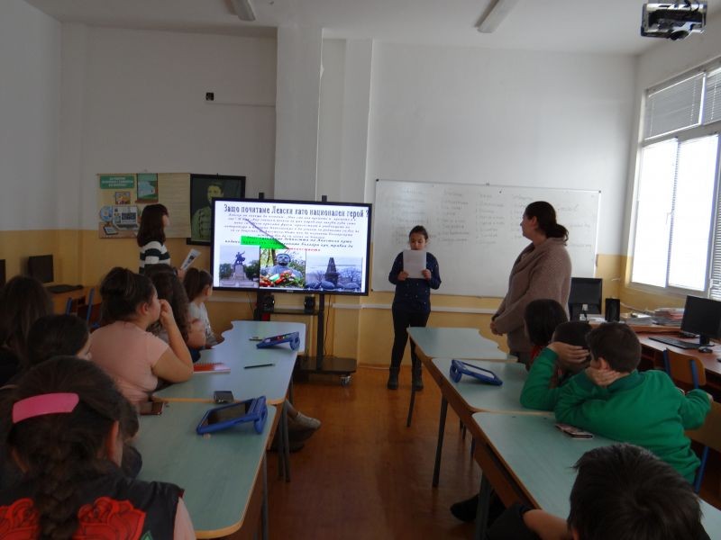 В следобедните часове по Занимания по интереси, децата от ПИГ V-VI клас бяха подготвили интересен интерактивен урок, свързан с делото на Апостола. Пъро гледаха кратко филмче, свързано с живота на дякон Левски, след това петокласничката Арзу и шестокласничката Йоанна, представиха на съучениците си презентация, подготвена от тях. Интересният нюанс на урока бе виртуалната разходка до музеите и паметниците на Васил Левски в България и чужбина, с помощта на Google Expeditions и таблетите за добавена виртуална реалност, което даде възможност да учениците да посетят толкова много места едновременно с един клик!