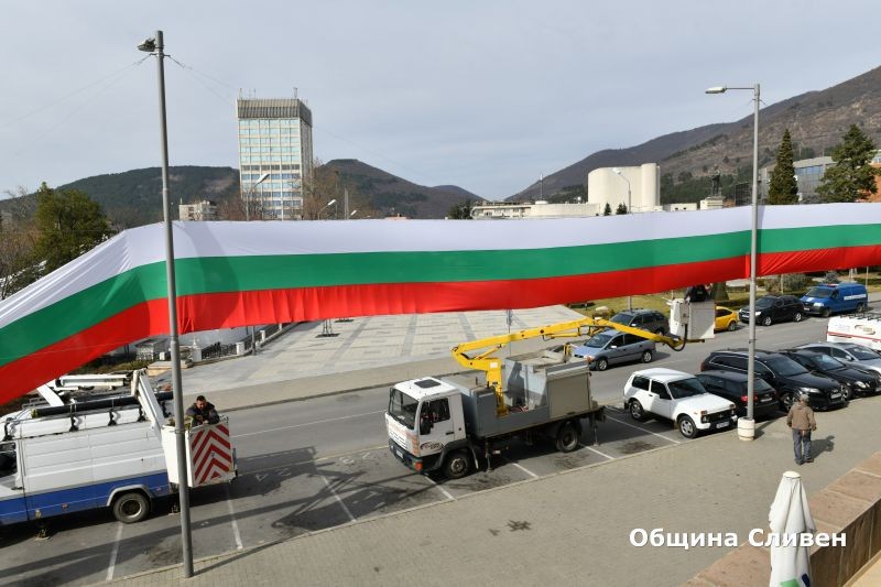 Поставят 140-метровото българско знаме в Сливен по повод 3 март - Националния празник на България