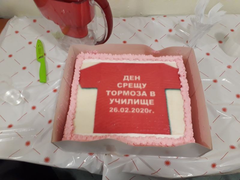 Благодарим на партньора за „сладкия” завършек на вечерта – торта, със символа на Международния ден против насилието в училище – розова фланелка.