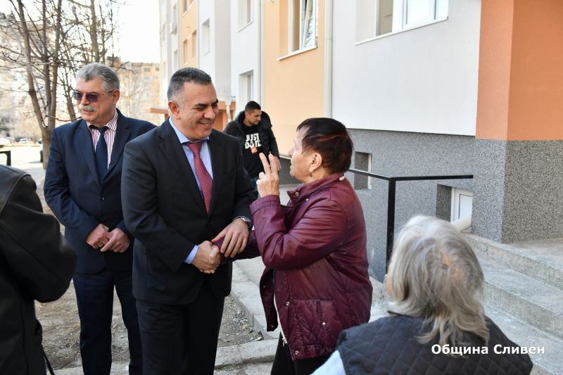 Кметът Стефан Радев днес посети поредния напълно завършен жилищен блок, който беше обновен по Националната програма за енергийна ефективност на многофамилни жилищни сгради. Там той се срещна с жителите, които споделиха своя ентусиазъм и задоволство от извършените по жилищата им дейности, с което те са придобили изцяло нов облик. Те благодариха още на Община Сливен, в лицето на кмета Радев, за добрата комуникация и съдействие по време на ремонтните дейности.