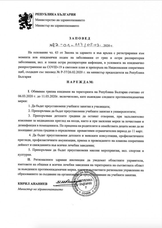 Със заповед на кмета на Община Сливен 6 март – петък, е обявен за неучебен ден, с цел ограничаване на риска от повишаване на заболелите от остри респираторни заболявания. Със заповед на министъра на здравеопазването от 6 до 11 март включително е обявена грипна епидемия за цялата страна и се преустановяват учебните занятия.