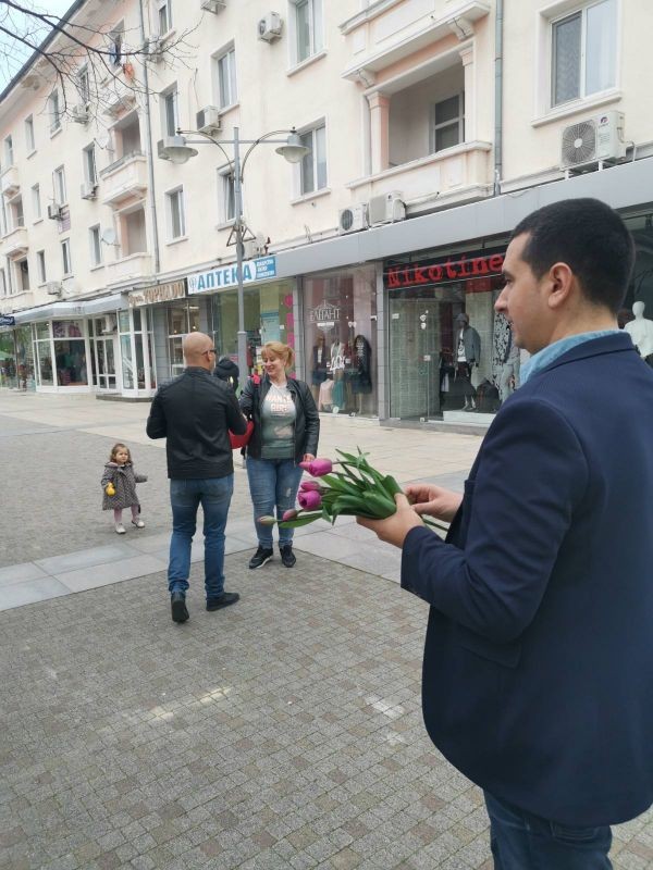 Общинските съветници и младежите от МГЕРБ направиха празника по – вълнуващ за жените, които са на работа днес, както и на тези, избрали да се разходят в центъра на Сливен. Те им пожелаха да бъдат здрави и щастливи, да запазят невероятния си дух и да са все така всеотдайни във всичко, което правят.