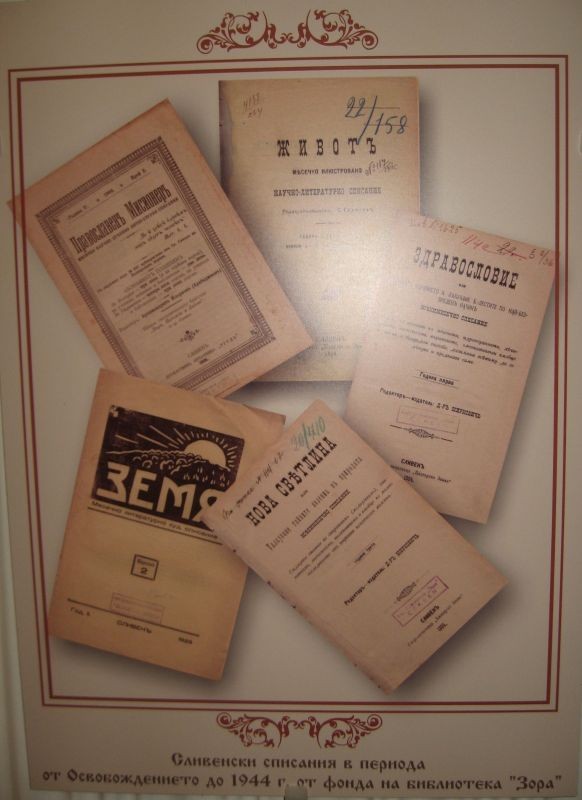 На 01.11.2010 г. от 17.30 ч., в фоайето на Драматичен театър „Стефан Киров”, беше открита изложба посветена на 150-годишнината на Читалище „Зора" и 155-годишнината на Библиотека „Зора”, под наслов „Архивни документи из 150–годишната история на читалището”. Изложбата представя изключително интересни издания, ценни книги и архивни документи, свързани с историята и дейността на най-старото книжовно светилище в Сливен – библиотека „Зора”. Изложбата е организирана със съдействието на Държавен архив Сливен, Регионален исторически музей – Сливен и Музей на текстилната индустрия. Изложбата бе открита от председателят на Читалище „Зора” г-н Минко Стефанов.
