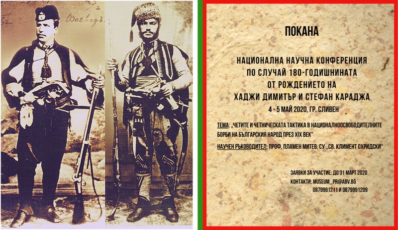 поради извънредната ситуация в страната, Ви информираме, че срокът за подаване на заявки за участие в Националната научна конференция "Четите и четническата тактика в националноосвободителните борби на българския народ през XIX век", организирана от РИМ - Сливен, е променен.