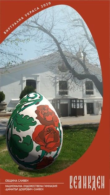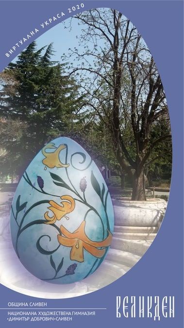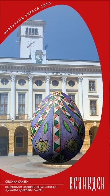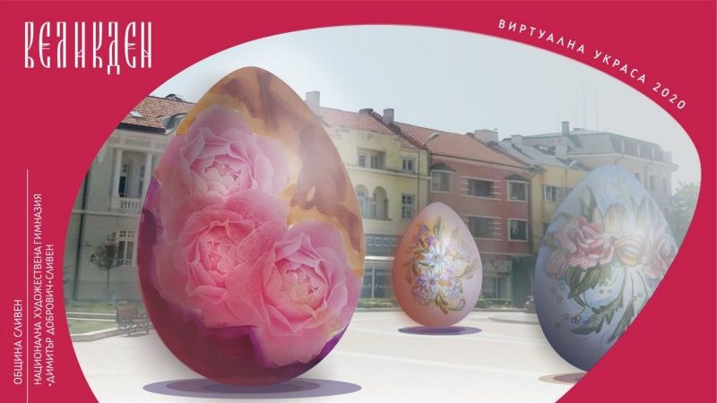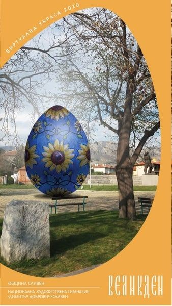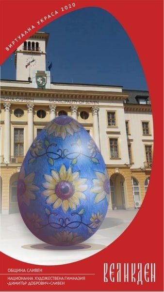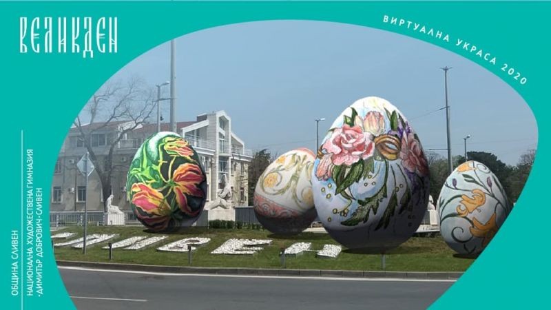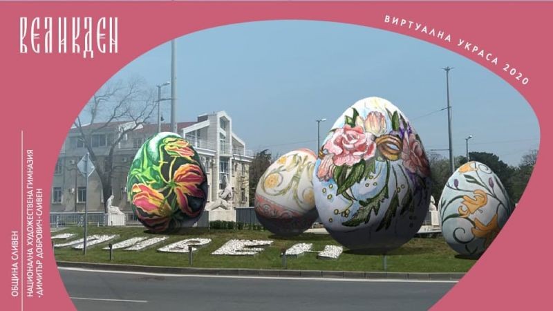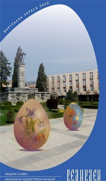 Заради пандемията от COVID-19 тази година Община Сливен няма да монтира великденска украса. За да се внесе все пак доза оптимизъм и вяра в положителния изход от борбата, на кръговото кръстовище на „Розова градина“ са поставени яйца от миналогодишната украса. Освен това проектите за новите яйца, които няма да бъдат осъществени през тази година, но са създадени от учениците на Национална художествена гимназия „Димитър Добрович“, са обработени и с тях е създадена виртуална изложба на фона на емблематични за Сливен места и пространства.