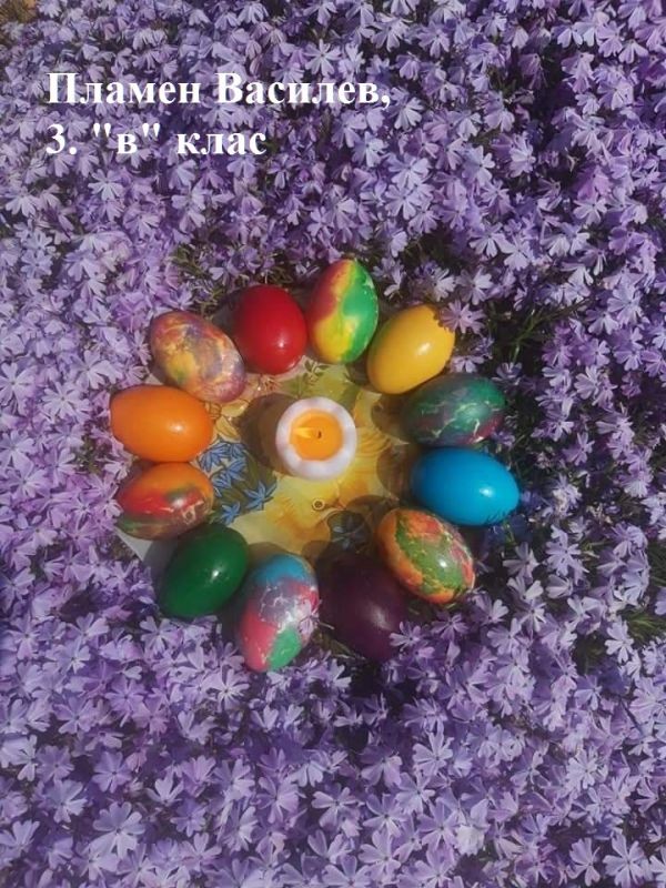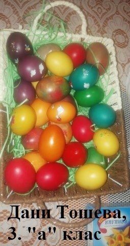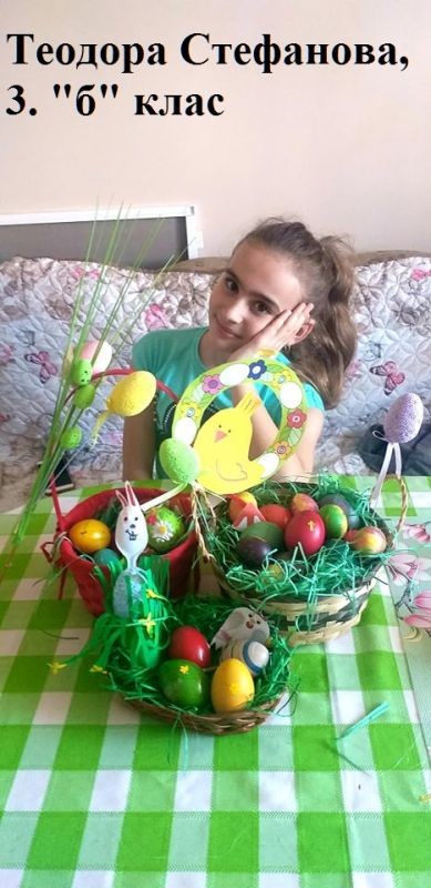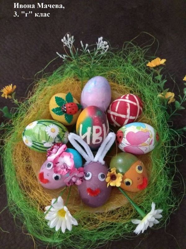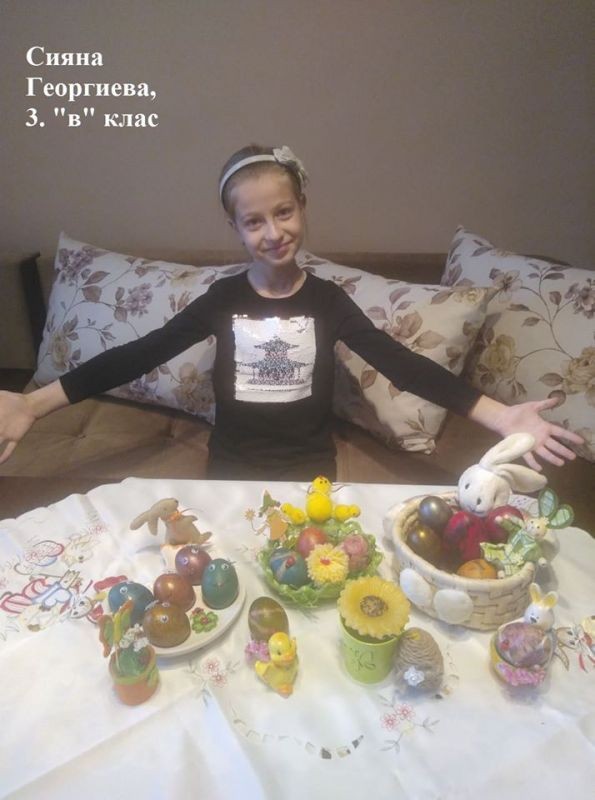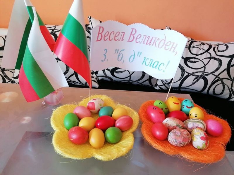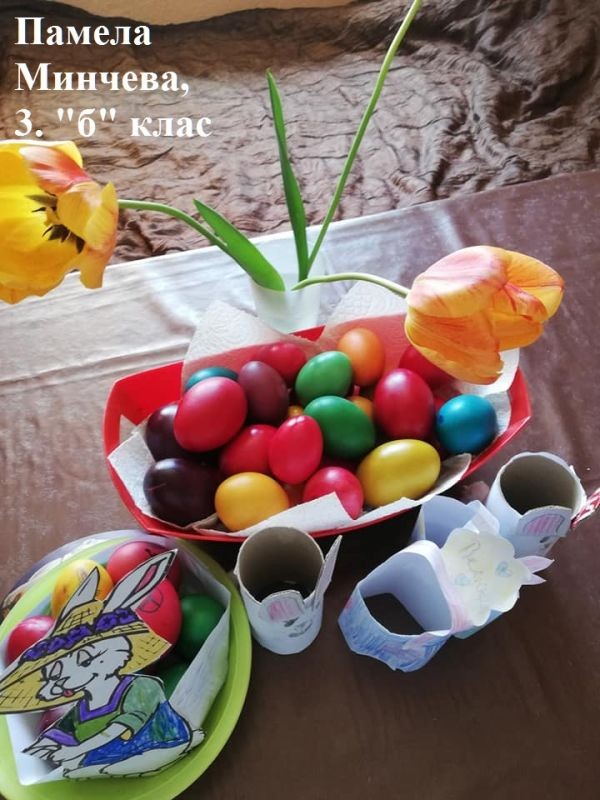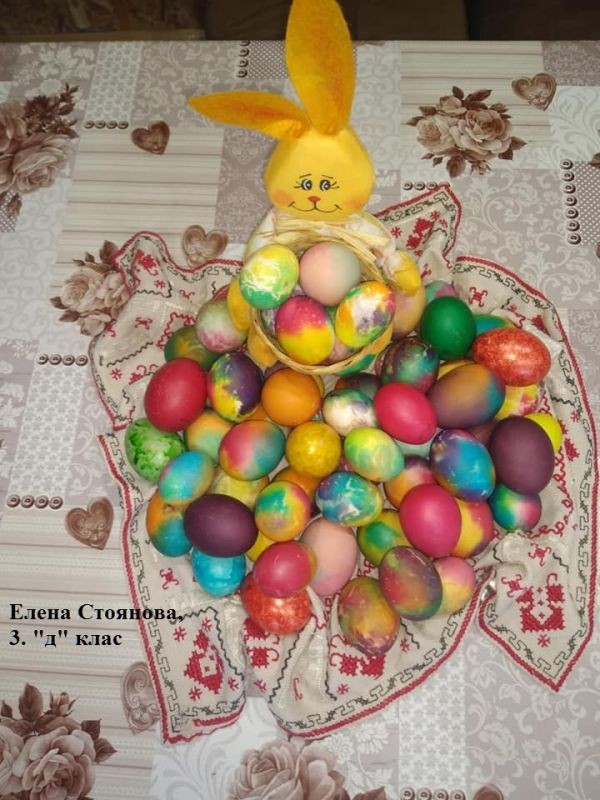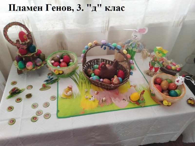 Учители и ученици от 3. клас от ОУ "Елисавета Багряна" подредиха изложба под надслов "Пъстър Великден". Те се обединиха в навечерието на светлия християнски празник и си подариха много настроение.