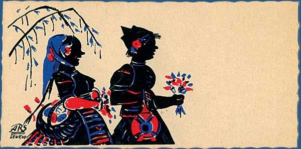 През 1906 година поздравителният текст върху картичките се е пишел отпред, а отзад се е написвало само името на получателя. След 1906 година картичката се разделя на две – отпред вече не се пише нищо. На лявата част на гърба се пише поздравлението, а в дясната страна е адресът и марката.