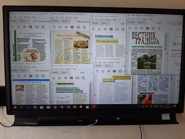 В изпълнение на Дейност 2 по проект „Образование за утрешния ден“ (изграждане на модерна защитена образователна среда в училищата и детските градини, базирана на съвременни съоръжения /оборудване за онагледяване/ представяне на учебния материал чрез ИКТ) в училище ни беше доставен 65² интерактивен тъч дисплей за оборудване на компютърния кабинет и лаптоп.