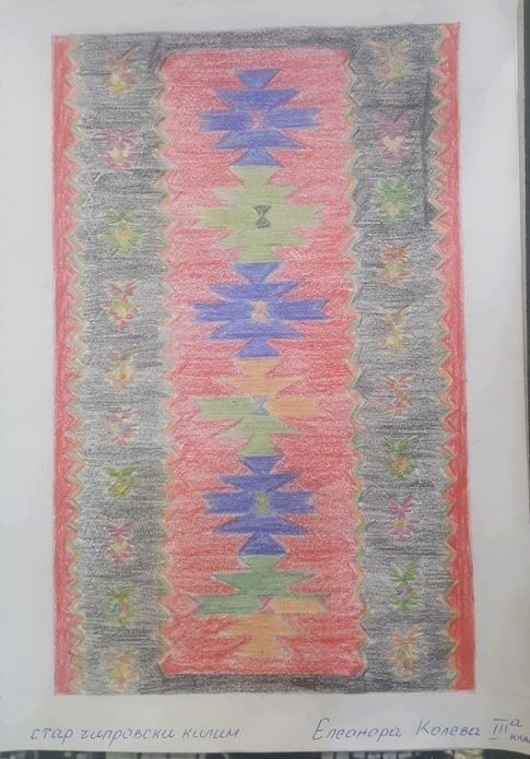 Групата по интереси „Природа и изкуство” представя своята изложба с рисунки по темите: „Чипровски и котленски килими”, „Народни носии” и „Украса на глинени съдове”.