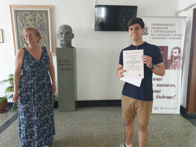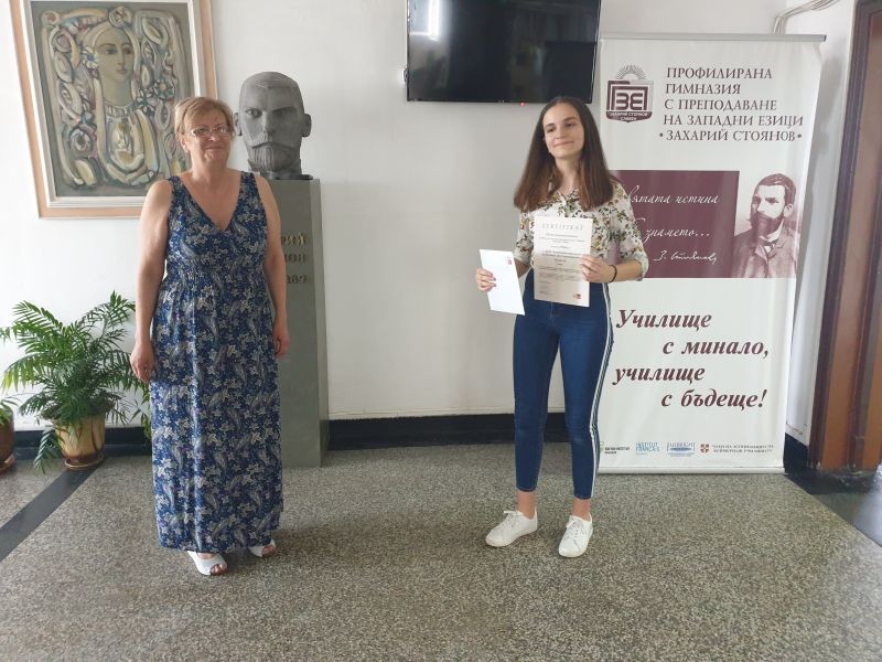 Елена Иванова Иванова от 8 д и Йоан Павлинов Павлов от 10 д завоюваха призовите първи места за ниво А1 и В1 сред повече от 500 участника от цяла България.