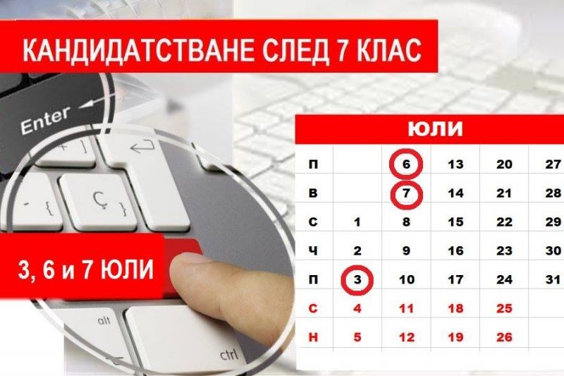 * 03, 05 и 06.07.2020 г. - Подаване на заявления за за участие в приема по електронен път /online/ или в училището гнездо.