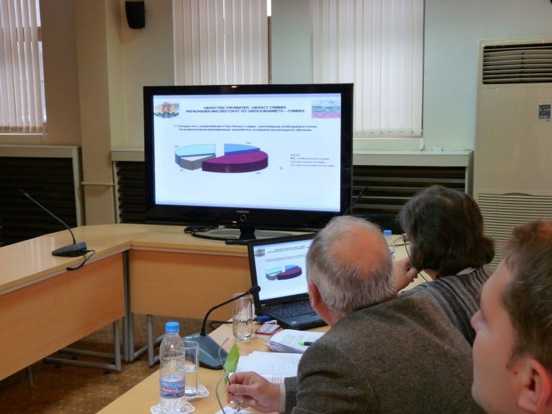 Г-н Кирил Захариев, началник на отдел „АПСФИО” в РИО- Сливен, представи резултатите от проведената анкета с работодатели за проучване потребностите от квалифицирани кадри, подготвяни в училищата от системата за професионално образование и обучение в област Сливен