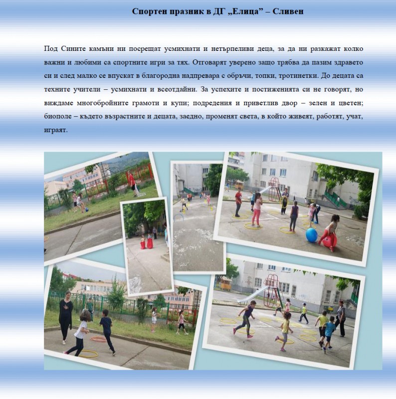 - спортен празник в ДГ "Елица" - Сливен.