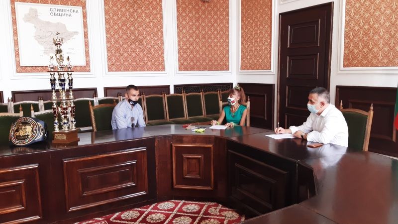 В рамките на приемния ден кметът се срещна с професионалния състезател по кикбокс Драгомир Петров – европейски, балкански и републикански шампион, носител на много отличия и награди. Той сподели пред кмета плановете си за предстоящата подготовка и за следващите състезания, на които ще се бори за нови постижения. Сливенският градоначалник го поздрави за успехите, като му пожела още много покорени върхове и да продължава да прославя името на родния град.