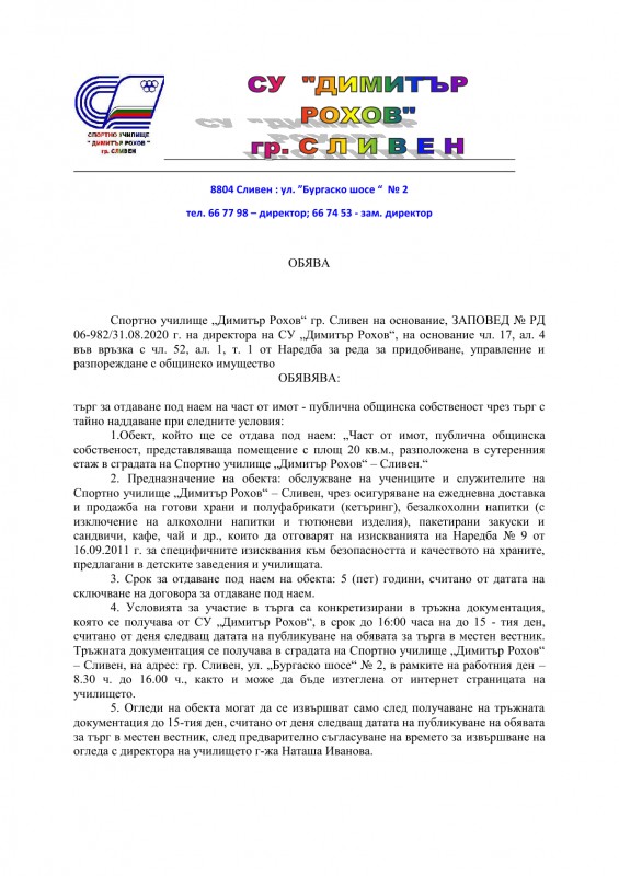 ОБЯВА ЗА ТЪРГ