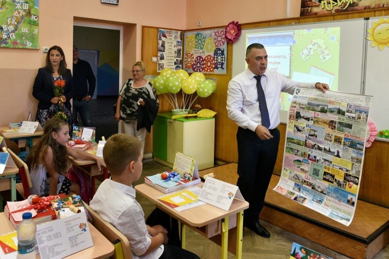Днес кметът Стефан Радев подари на първокласниците и табло на Сливенския буквар, който разказва за природните и историческите забележителности на сливенския край, изобразени с всяка буква от българската азбука. Такива табла има във всяка класна стая на всички първолаци в Сливен.