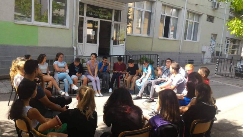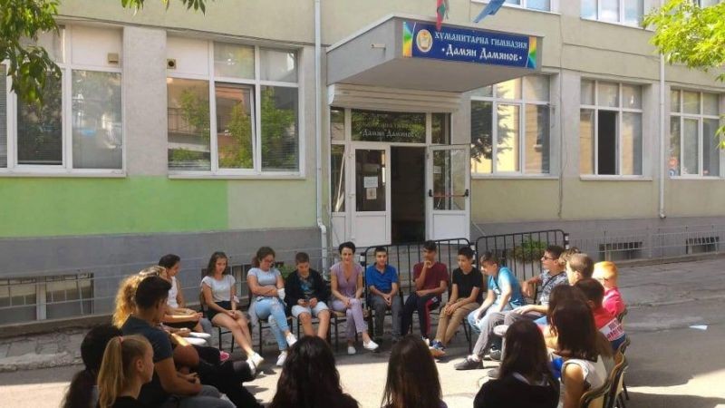 Урок по философия на открито в 8а клас се проведе днес в Профилираната хуманитарна гимназия „Дамян Дамянов”. С нестандартното си решение учителката Стефка Генчева ни припомня някои добри педагогически практики от времето на перипатетиците на Аристотел. За добрия учител и тежките времена на пандемия могат да бъдат стимулатор за експерименти в търсене на добри практики.
