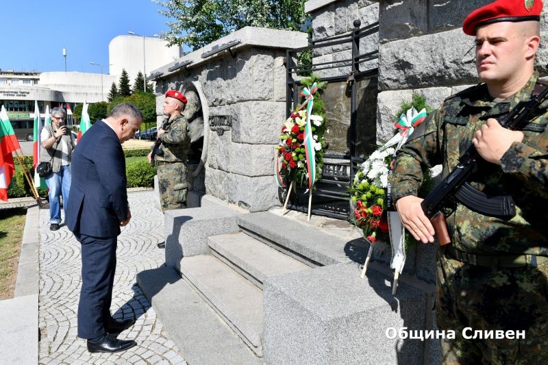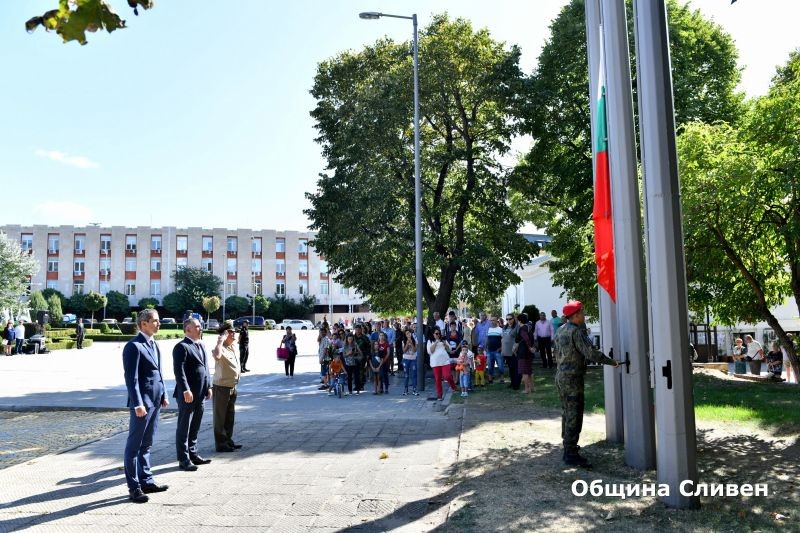 С официална церемония на площад „Хаджи Димитър“ в Сливен днес бе отбелязан Денят на Независимостта на България. Честването на 112-годишнината започна с издигане на националния трибагреник под звуците на Химна на България.