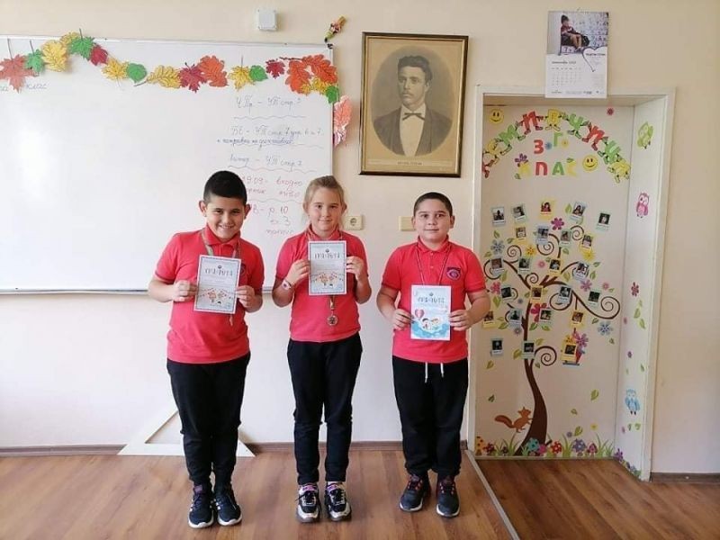 Третокласници от ОУ "Елисавета Багряна" бяха наградени с грамоти и със златни медали като победители в Националното финално състезание на СБНУ. Представилите се достойно ученици получиха сребърни медали.