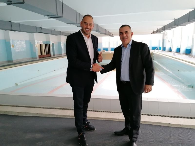 Световният шампион Петър Стойчев и кметът Стефан Радев посетиха плувния басейн в кв. „Сини камъни“