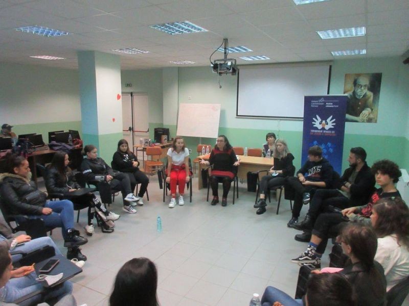 Залата на Военния клуб бе както никога оживена от „Цветни сенки“, представление, в което театралната игра всъщност се оказа неформално здравно обучение на младите зрители, насочено към предотвратяване на употребата на наркотични вещества и свързания с това риск от заразяване с ХИВ. След представлението екипът на театър „Цвете“ представи досегашната си дейност и проекта, в който е включена и театралната трупа на гимназията. Младите театрали хуманитаристи имаха първа репетиция съвместно с екипа на театър „Цвете“.