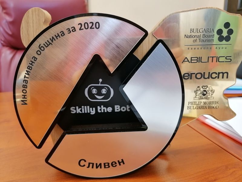 Наградата беше връчена заради въвеждането на чатбот платформата Скили, разработена от българска IT компания по повод пандемията. Чатботът отговаря на най-важните въпроси, свързани с превенция на вируса, симптоматика и др. След това беше създаден чатбот Хаджията, който разказва всичко за Сливен и отговоря на въпроси бързо и по всяко време.