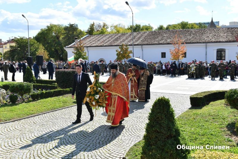 На площад „Хаджи Димитър“ се проведе и ритуал с издигане на националното знаме, знамето на Сливен и Европейската общност. Благодарствен молебен за здраве и добруване на гражданите на Сливен отслужи Негово Високопреосвещенство Сливенският митрополит Иоаникий.