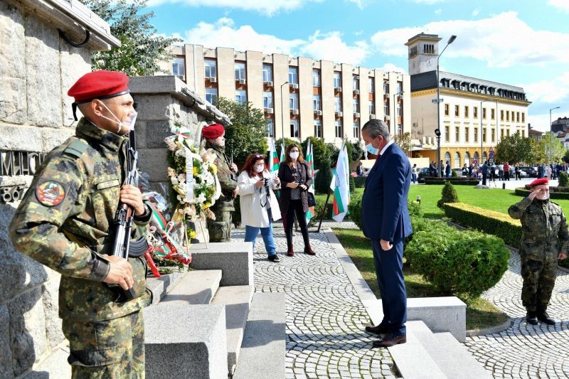 По-късно на централния площад „Хаджи Димитър“ се състоя церемония с военни почести и поднасяне на венци и цветя пред паметника на Хаджията и сливенските възрожденци. Общината ще направи всичко възможно, за да съхраним нашата общност и за да продължи развитието на Сливен, каза кметът Радев. Негово Високопреосвещенство сливенският митрополит Иоаникий отправи благодарствена молитва за здраве и благополучие. Той се помоли Отечеството и жителите на Сливен да бъдат опазени от болести, от пандемия, още повече – от омраза. „Защото без любов е тъмнина“, каза дядо владика.