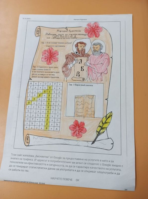 По повод този светъл празник, учениците от първи клас изготвиха табла и книгоразделители с портретите на народните будители.